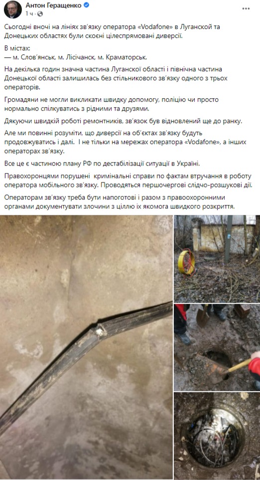 Пользователи в Facebook сообщают, что связи Vodafone нет у жителей подконтрольных Украине населенных пунктов: Славянска, Краматорска, Покровска, Белокуракино, Северодонецка и других городов.