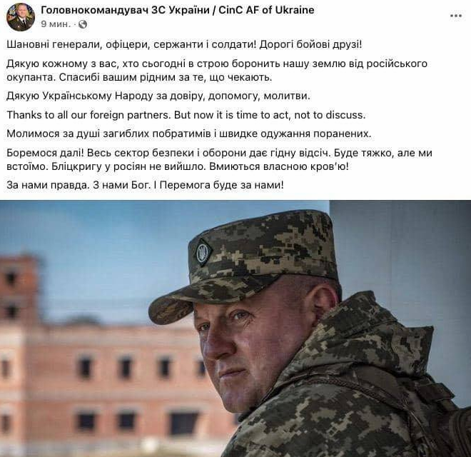 22:37 Командование сухопутных войск ВСУ подвело итоги дня. Говорит, что противник ставил цель окружение крупных городов, но пока это не удаётся.
