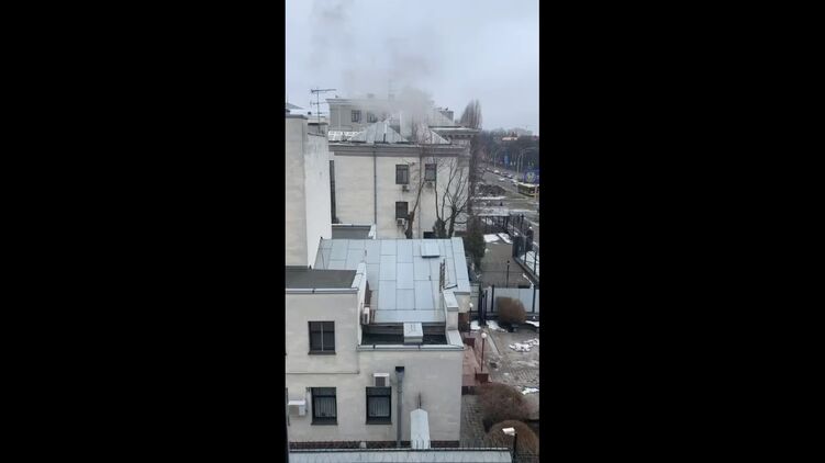 Из здания посольства РФ в Киеве шел дым. Фото: скриншот из видео