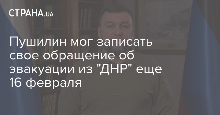 Пушилин мог записать свое обращение об эвакуации из "ДНР" еще 16 февраля