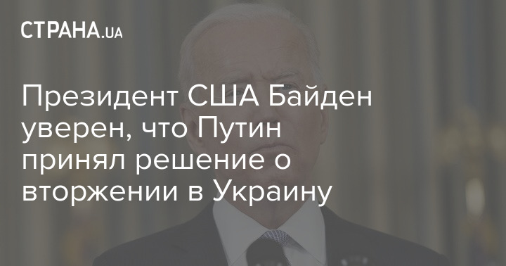 Президент США Байден уверен, что Путин принял решение о вторжении в Украину