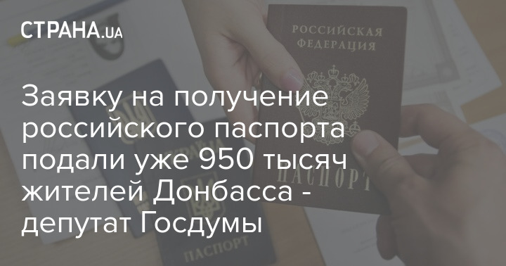 Заявку на получение российского паспорта подали уже 950 тысяч жителей Донбасса - депутат Госдумы