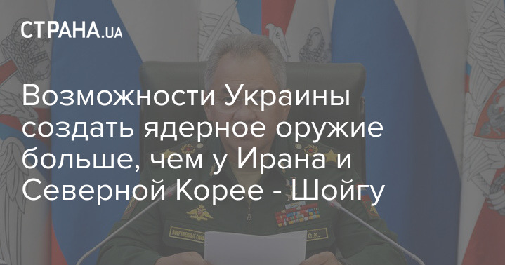 "За долгие годы СССР в Украине были созданы возможности по созданию ядерного оружия и носителей для него. Там есть специалисты, которые имеют возможности большие, чем у Ирана и Северной Кореи", - сказал Шойгу.