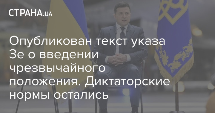 На сайте Верховной Рады опубликовали текст указа президента Владимира Зеленского о чрезвычайном положении в Украине. Оно должно быть введено с полуночи 24 февраля на 30 суток.