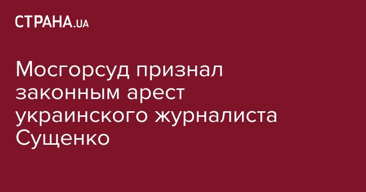Московский городской суд признал законным и отказал в удовлетворении иска защиты, пытавшейся оспорить взятие под стражу журналиста "Укринформа" Романа Сущенко. Об этом сообщил на своей странице в Twitter адвокат Сущенко Марк Фейгин.