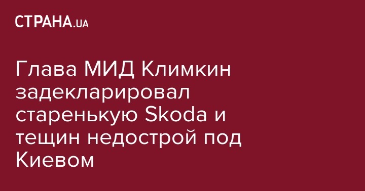 Министр иностранных дел Павел Климкин зарегистрировал свою декларацию в Едином государственном реестре и указал, что имеет недостроенный дачный дом в селе Козине Киевской области площадью 192 квадратных метра и автомобиль Skoda года 2000  года выпуска.