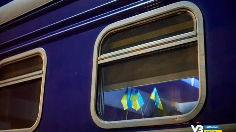 Поезда на Западную Украину идут дольше суток. В заполненных людьми вагонах люди спят везде, где есть место - в том числе, и на полу в проходе.