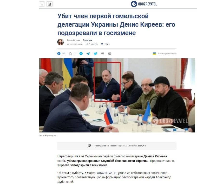 21:48 Ситуация с убитым членом переговорной группы с Россией Денисом Киреевым становится все более загадочной.