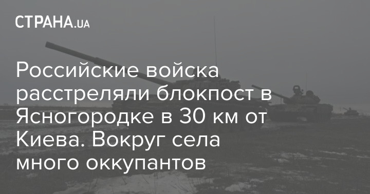 Российские войска расстреляли блокпост в селе Ясногородка Киевской области, который находится в 30 км от Киева.