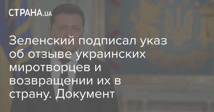 Зеленский подписал указ об отзыве украинских миротворцев и возвращении их в страну. Документ