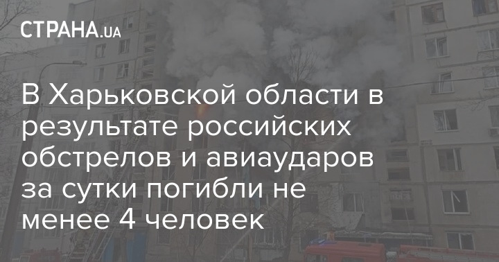 В Харьковской области в результате обстрелов и авиаударов со стороны России за сутки погибли не менее 4 человек, сообщает ГСЧС.