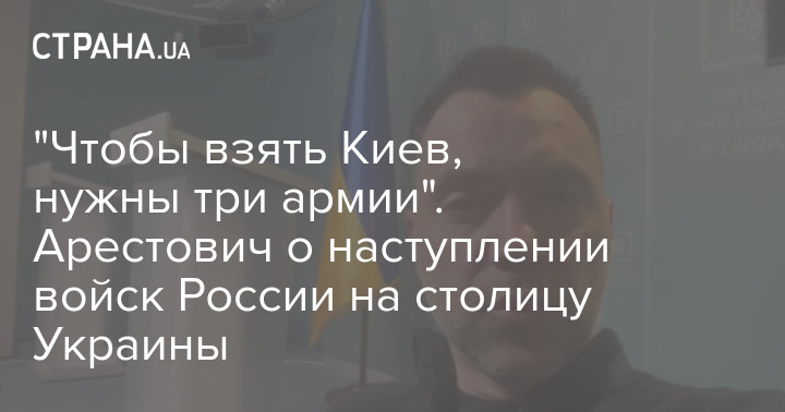 "Чтобы взять Киев, нужны три армии". Арестович о наступлении войск России на столицу Украины