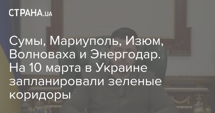 Сумы, Мариуполь, Изюм, Волноваха и Энергодар. На 10 марта в Украине запланировали зеленые коридоры