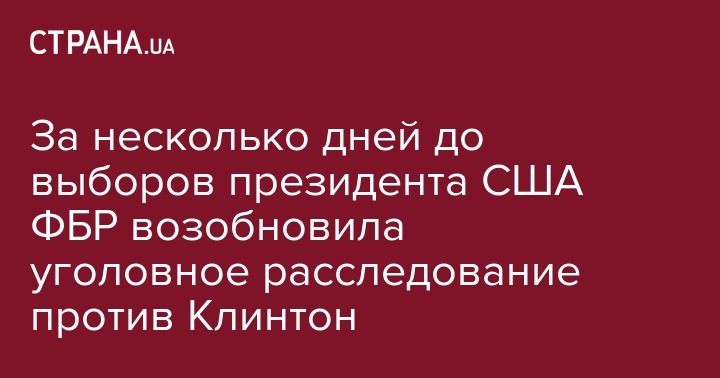 За несколько дней до выборов президента США ФБР возобновила уголовное расследование против Клинтон
