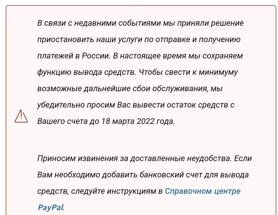 20.08 PayPal предупредил о блокировании электронных кошельков россиян с 18 марта.