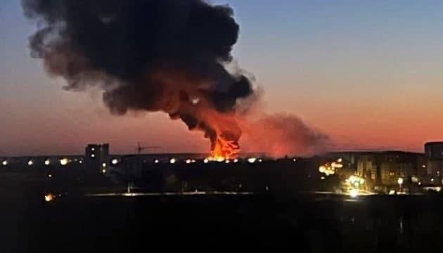 07.25 Сегодня утром в Луцке со стороны аэродрома прозвучало четыре мощных взрыва. После этого в городе возник пожар. Дым поднялся высоко над городом.