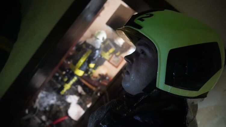 В Киеве по зданию запустили дрон-камикадзе. Фото: ГСЧС