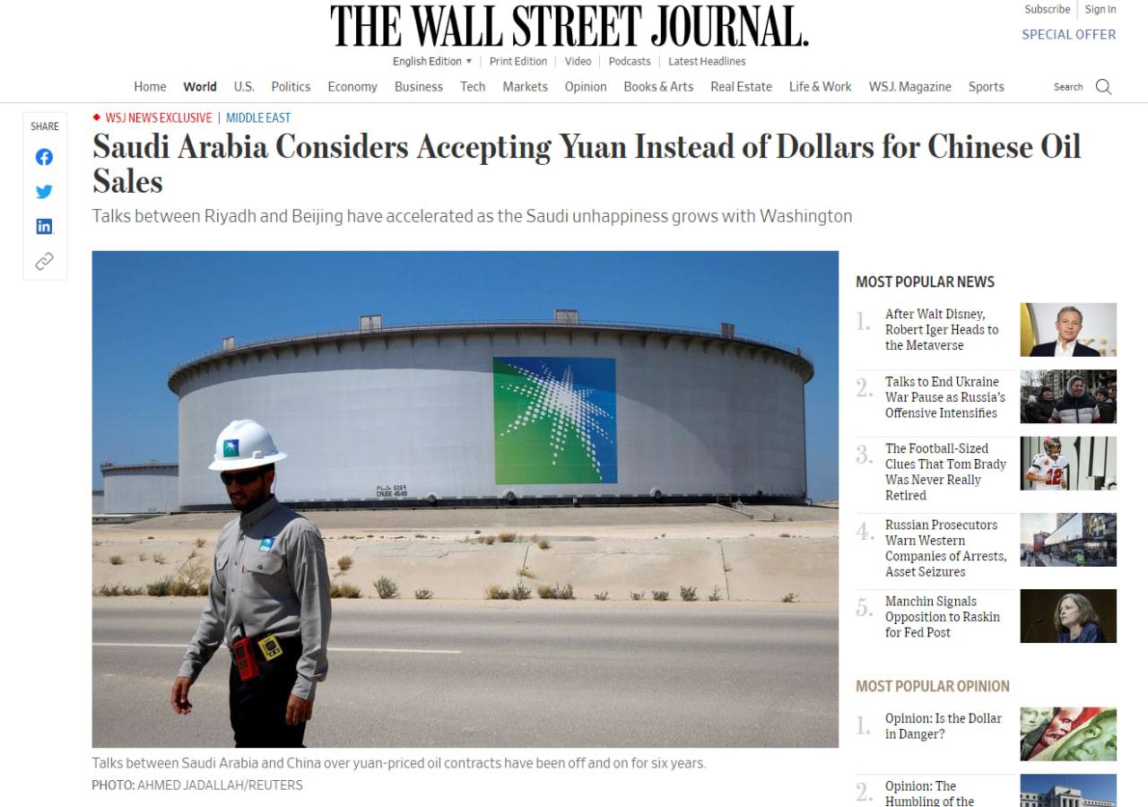 16.33 Саудовская Аравия ведет активные переговоры с Пекином о том, чтобы продавать часть своей нефти в Китай в юанях. Об этом сообщает The Wall Street Journal cо ссылкой на источники, ознакомленные с вопросом.
