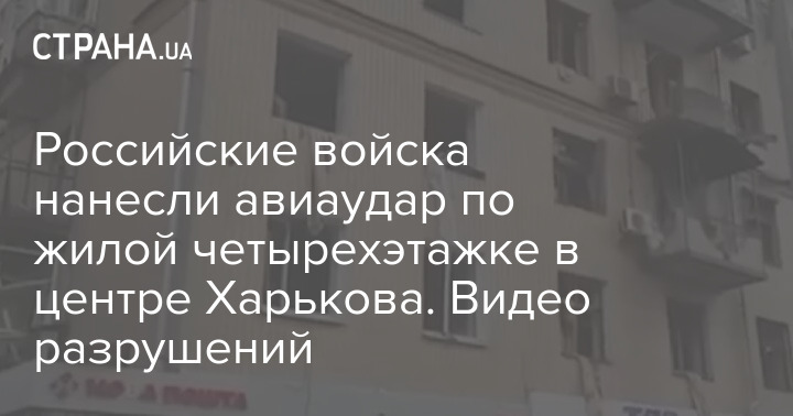 Российские войска нанесли авиаудар по жилой четырехэтажке в центре Харькова. Видео разрушений
