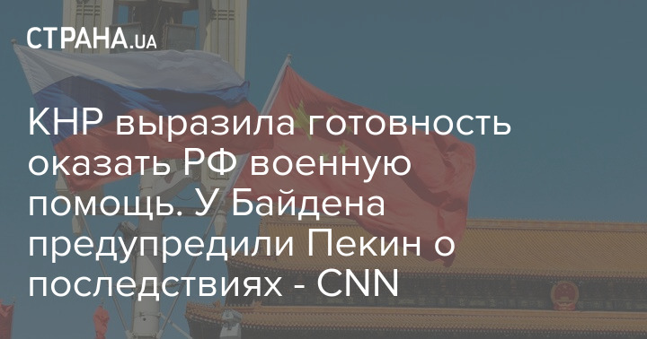 У США есть информация, что Китай выразил готовность предоставить России запрошенную военную и финансовую помощь во время войны с Украиной.