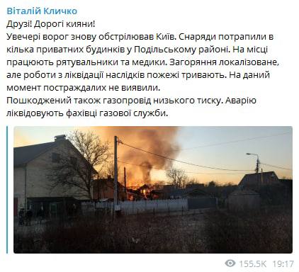 19.38 Кличко заявил об обстреле частного сектора на Подоле.