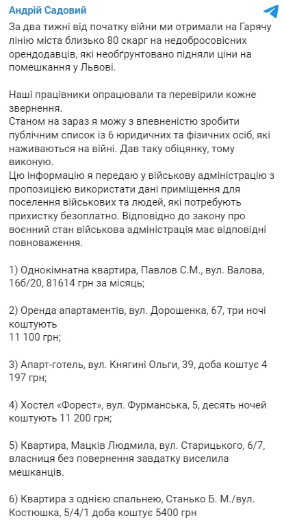 21.43 Мэр Львова Андрей Садовой своеобразно стал бороться с завышенными ценами на жилье. Он опубликовал список апартаментов, которые ставят космические цены.