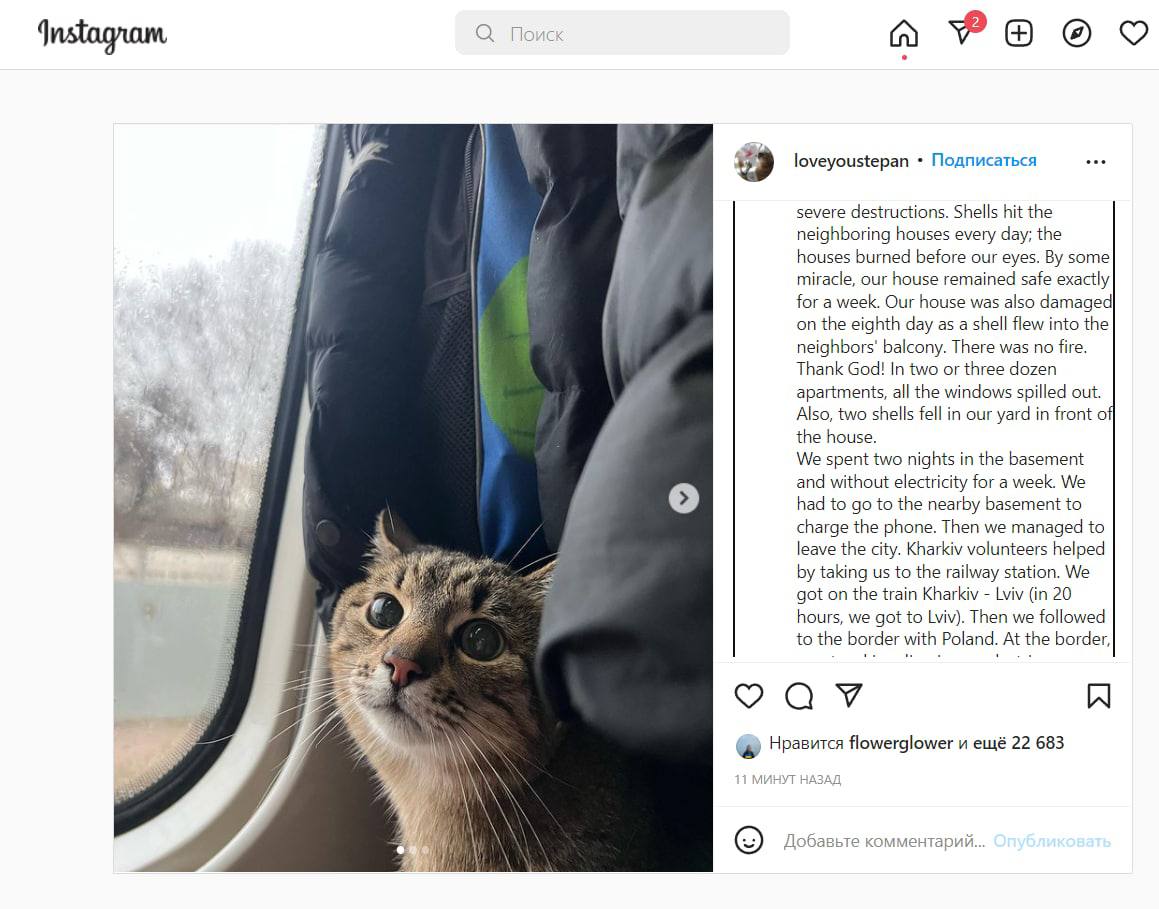 Как выяснилось, ему и его хозяйке удалось выбраться из Харькова (они жили в самом обстреливаемом районе - Северной Салтовке) и они уже в безопасности, за границей.
