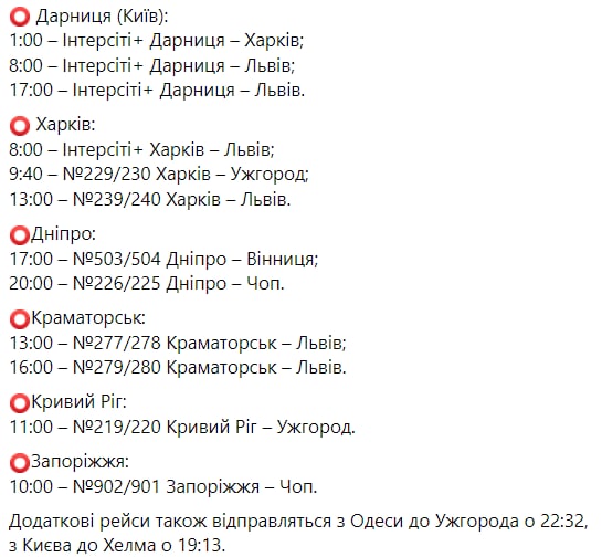 21.32 Список эвакуационных поездов на завтра, 18 марта.