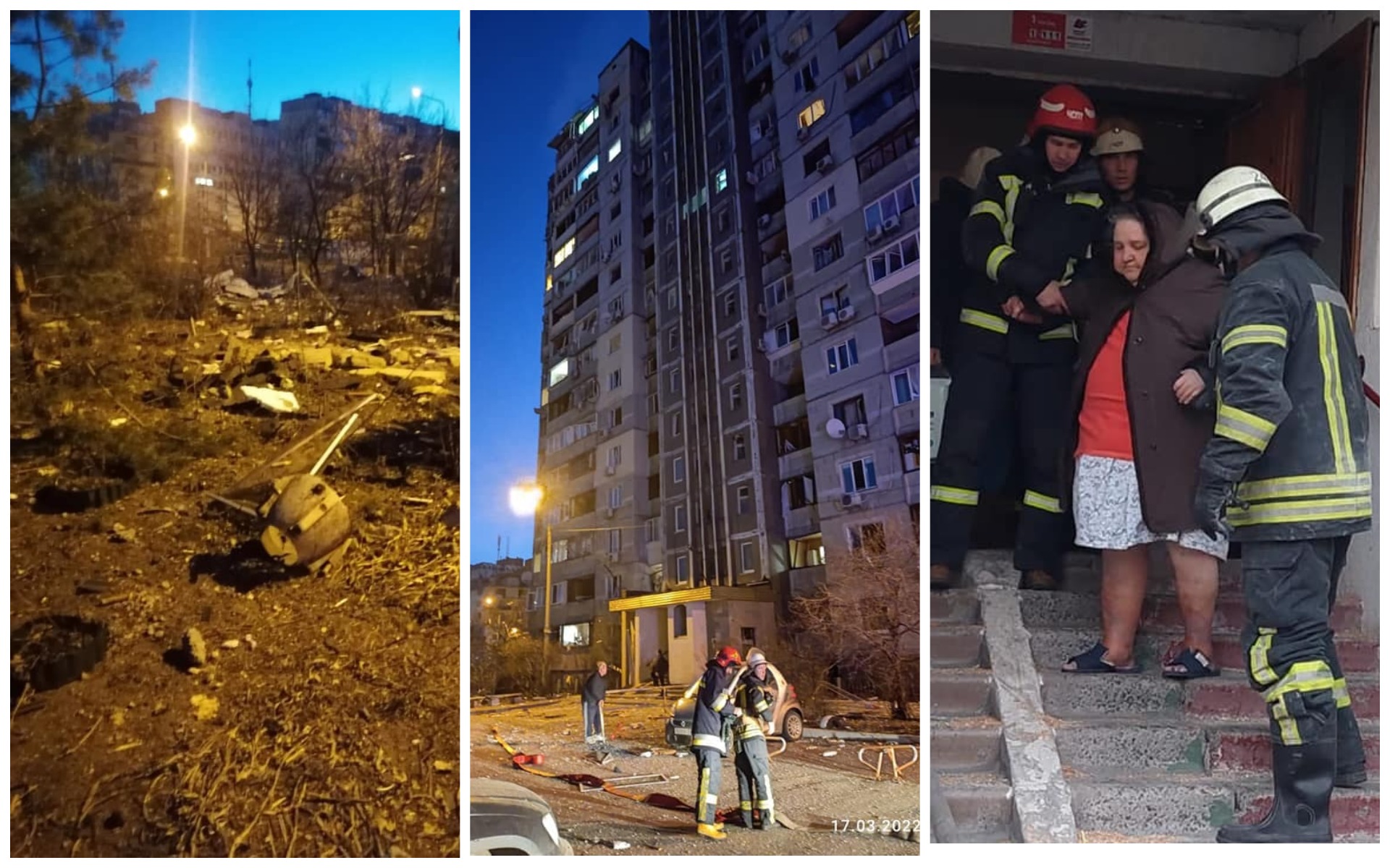 По данным ГосЧС, на дом упали обломки сбитой ракеты. Загорелась квартира на 16-м этаже. Есть погибший.