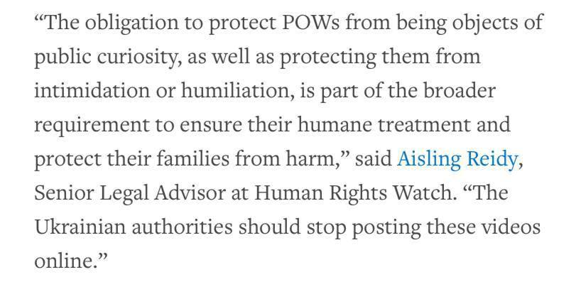 16.38 Советник главы МВД Украины Антон Геращенко ответил на призыв Human Rights Watch прекратить публиковать видео с российскими военнопленными: