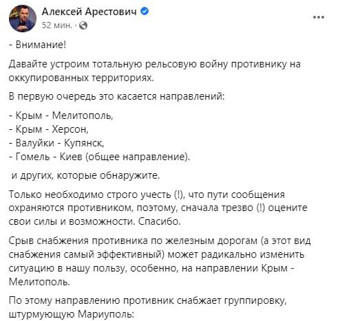 10.31 Министр обороны Украины Алексей Резников заявил, что российские войска совершают геноцид против украинцев в Мариуполе.