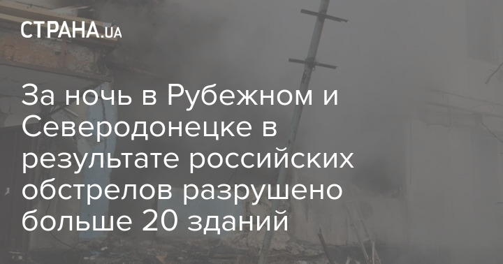 За ночь в Рубежном и Северодонецке в результате российских обстрелов разрушено больше 20 зданий
