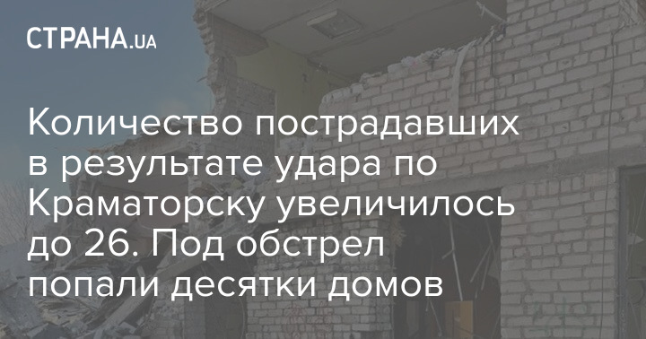 Количество пострадавших в результате удара по Краматорску увеличилось до 26. Под обстрел попали десятки домов