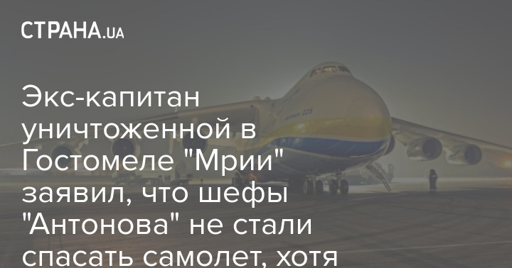 Экс-капитан уничтоженной в Гостомеле "Мрии" заявил, что шефы "Антонова" не стали спасать самолет, хотя могли