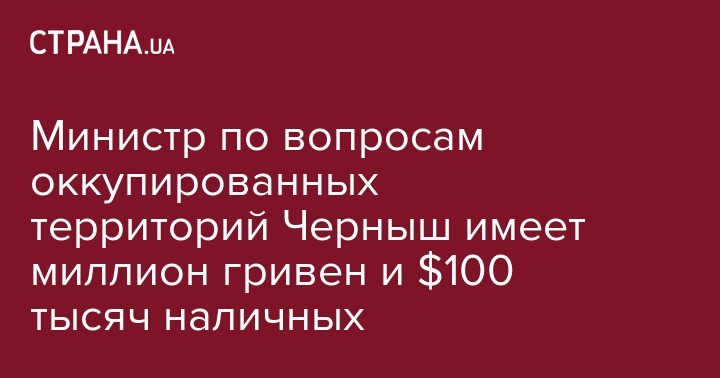 Министр по вопросам оккупированных территорий Черныш имеет миллион гривен и $100 тысяч наличных