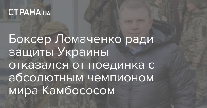 Украинский боксер Василий Ломаченко, который ранее вступил в ряды теробороны, отказался от боя с абсолютным чемпионом мира Джорджем Камбососом ради того, чтобы защищать Украину.