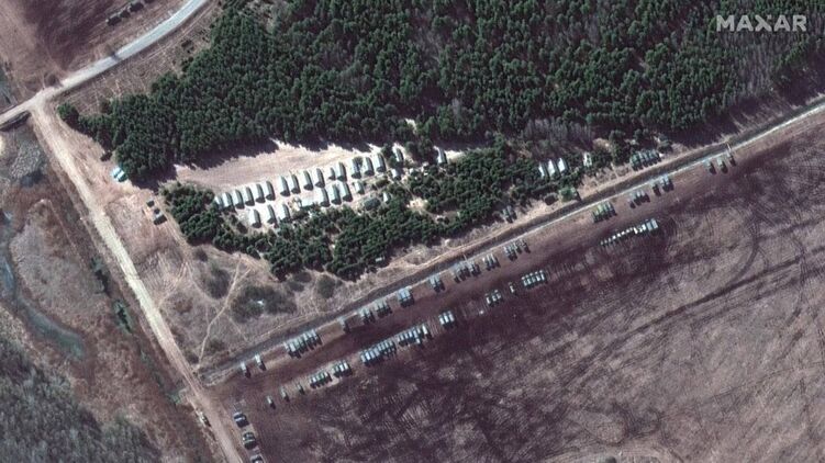 Спутник Maxar опубликовал фото скопления наступательных вооружений на белорусско-украинской границе. Фото: Maxar