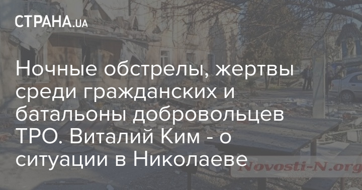 Ночные обстрелы, жертвы среди гражданских и батальоны добровольцев ТРО. Виталий Ким - о ситуации в Николаеве