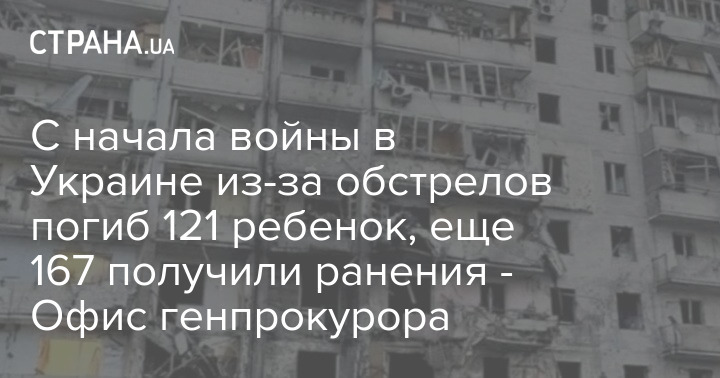 С начала войны в Украине из-за обстрелов погиб 121 ребенок, еще 167 получили ранения - Офис генпрокурора