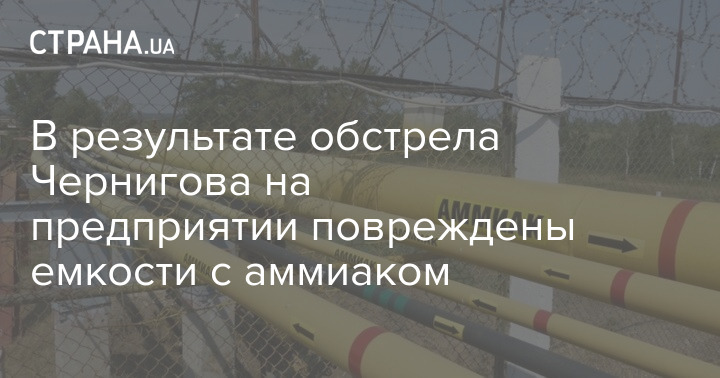В результате обстрела одного из пищевых предприятий Чернигова произошло повреждение магистрального аммиакопровода и осколочное повреждение одной емкости с аммиаком.