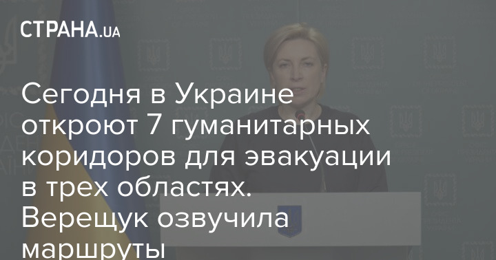 Сегодня в Украине откроют 7 гуманитарных коридоров для эвакуации в трех областях. Верещук озвучила маршруты