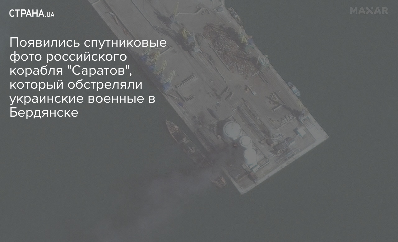 Появились спутниковые фото российского корабля "Саратов", который обстреляли украинские военные в Бердянске