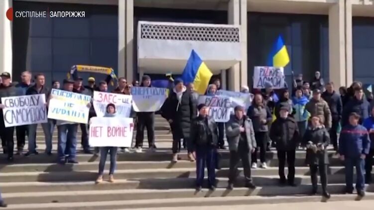 Жители оккупированного Энергодара вышли на митинг с требованием отпустить похищенного захватчиками заммэра