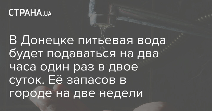 В Донецке питьевая вода будет подаваться на два часа один раз в двое суток. Её запасов в городе на две недели