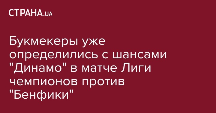 Букмекеры уже определились с шансами "Динамо" в матче Лиги чемпионов против "Бенфики"