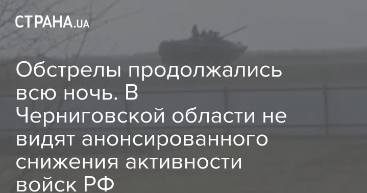 Губернатор Черниговской области Вячеслав Чаус заявил, что в регионе не наблюдается анонсированного уменьшения активности войск РФ.