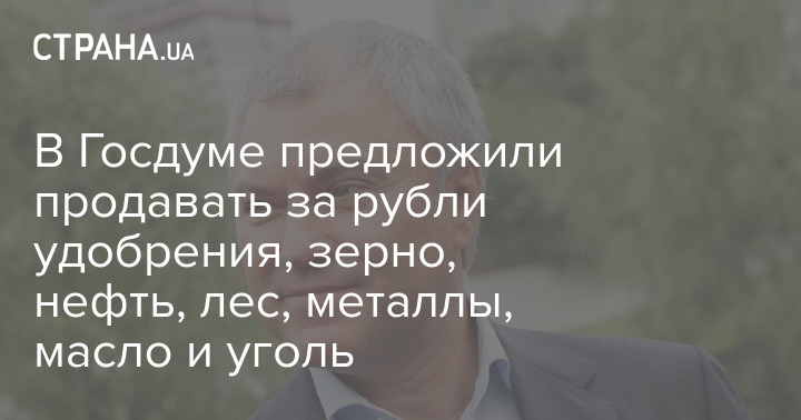 В Госдуме предложили продавать за рубли удобрения, зерно, нефть, лес, металлы, масло и уголь