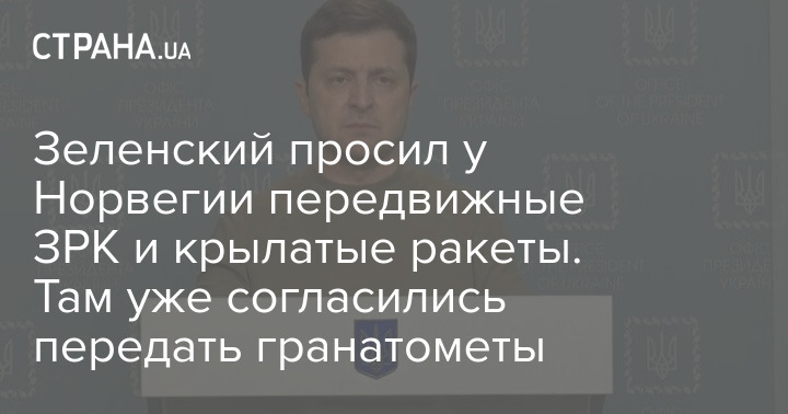 Президент Владимир Зеленский сегодня выступил перед парламентом Норвегии и попросил предоставить Украине передвижные зенитно-ракетные комплексы NASAMS и противокорабельные ракеты "Гарпун".