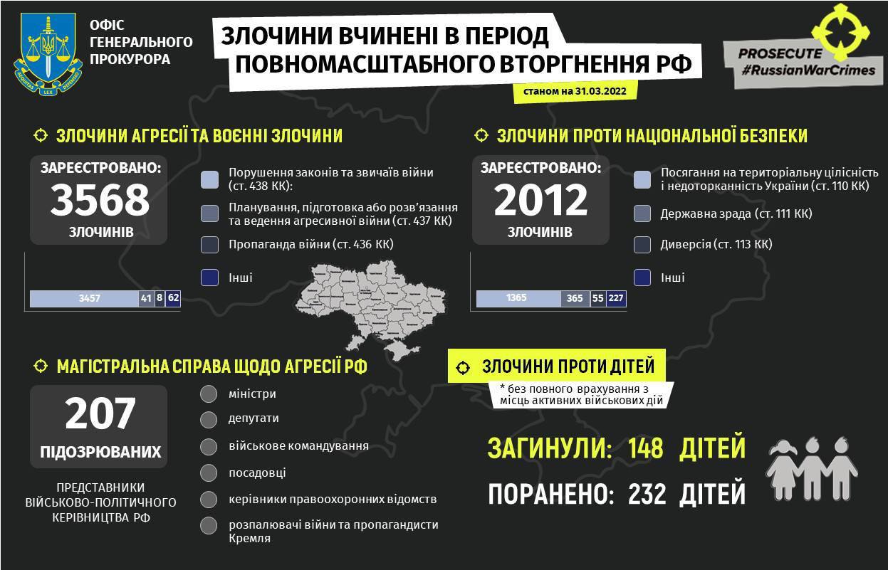 За время войны в Украине, которую 24 февраля развязала Россия, погибли уже 148 украинских детей. Еще 232 ребенка получили ранения. Такие данные приводит Офис генпрокурора.