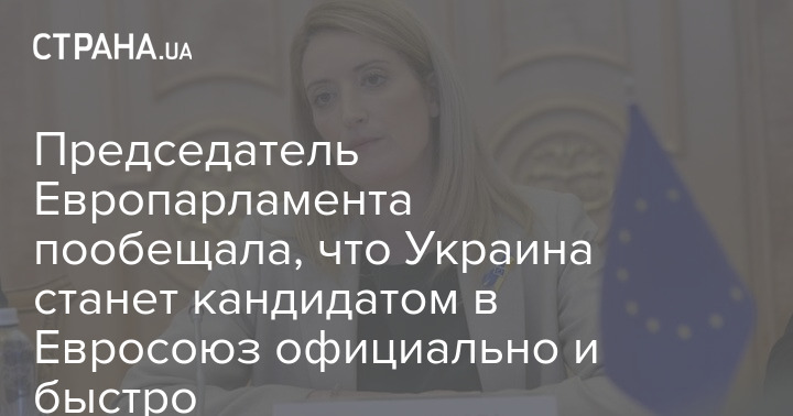 Председатель Европарламента пообещала, что Украина станет кандидатом в Евросоюз официально и быстро